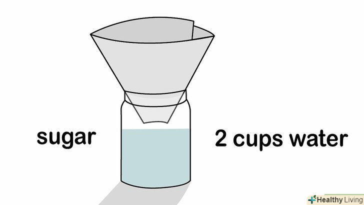 Зробіть подібну пастку з банки, щоб позбутися від кімнатних мух. налийте в банку дві склянки води і додайте трохи цукру. Складіть аркуш паперу у вигляді воронки і помістіть вузькою стороною в банку. Солодкий сироп буде залучати кімнатних мух, але вони не зможуть вибратися назовні. [10]- Змішайте в каструлі молоко, нерафінований цукор, мелений перець і доведіть до кипіння. через десять хвилин перелийте розчин в тарілки, а потім розставте їх по дому. Якщо здається, що мухи відлітають, додайте в тарілку кілька крапель рідини для миття посуду. В іншому випадку при посадці в розчин мухи будуть просто тонути. [11]