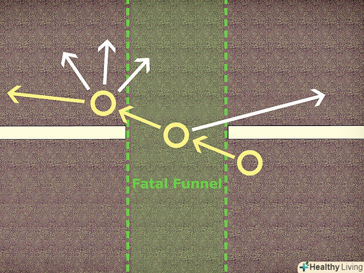 Ідіть уздовж однієї зі стін коридору (не йдіть посередині коридору, але і не тріться об стінку). Коридор-це вузький прохід, в якому вас може чекати злочинець. Середина коридору - це його зона ураження.