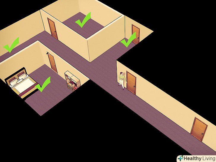 Зачистіть решту кімнати. подивіться за/під меблями і у вбудованих шафах. Переконайтеся, що в кімнаті нікого немає.