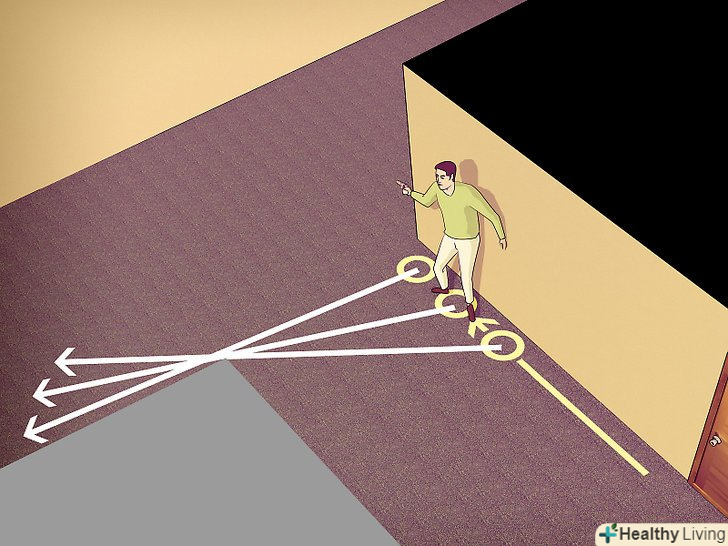 Встаньте з одного боку сходів (як в коридорі). якщо на сходи виходить кут або інша перешкода, встаньте так, щоб бути навпроти нього.