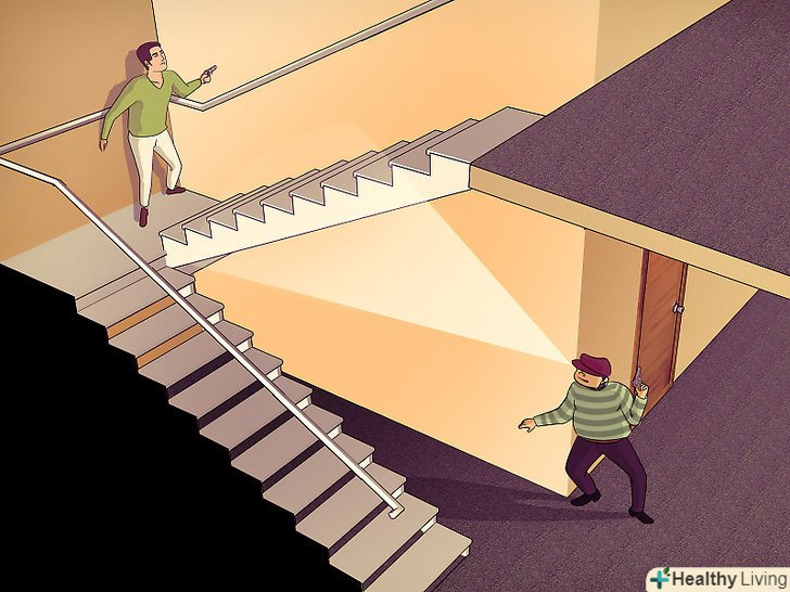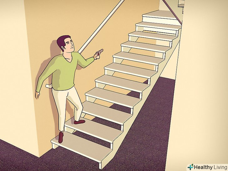 Подивіться вгору, перш ніж підніматися по сходах. спробуйте оглянути кілька сходових прольотів.- Оглядайте будь-які кути, що трапляються на вашому шляху. Не нехтуйте цим - на сходах занадто багато зон ураження.