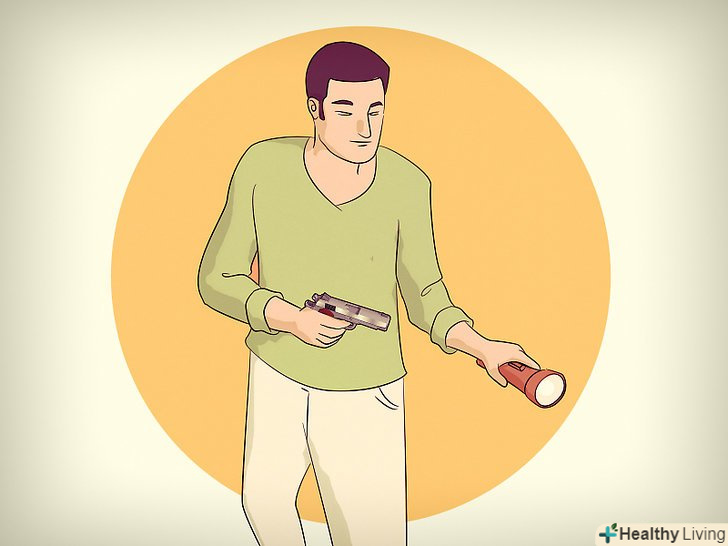 Виберіть відповідну вогнепальну зброю. ніколи не зачищайте будівлю з порожніми руками. Візьміть пістолет (револьвер), дробовик або гвинтівку. Ви повинні добре знати техніку безпеки поводження зі зброєю. Наприклад, при виборі мети обов'язково враховуйте те, що знаходиться позаду неї. Не підстреліть вашого сина, потайки повертається вночі додому. Пам'ятайте, що куля може пробити стіну і поранити когось із Ваших рідних.- Краще готуватися до оборони і зачистки будинку з пістолетом, так як це легка і ефективна зброя.