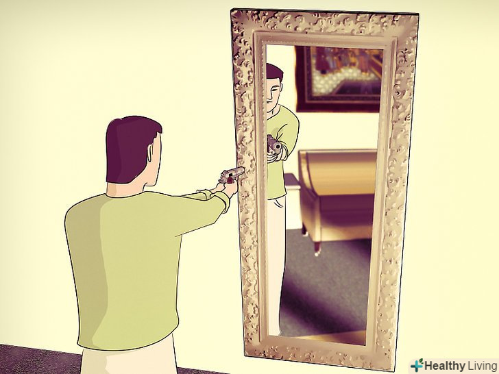 Попрактикуйтесь приймати правильну стійку перед дзеркалом. спробуйте обігнути дзеркало, щоб перевірити, що в ньому відбивається. Огинайте дзеркало так, щоб було видно тільки ваше око і зброю.- Ви також можете потренуватися з іншою людиною з використанням ліхтариків. Якщо ваш партнер бачить вас, він світить на Вас ліхтарем (і навпаки). Так ви навчитеся правильно огинати кути.