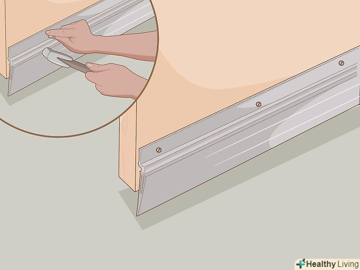 Заблокуйте двері. якщо між нижнім краєм дверей і підлогою є щілина, миша може проникнути через неї. Пам'ятайте, що миші здатні протиснутися через дуже вузькі отвори і тріщини. Зайдіть в найближчий магазин будматеріалів і купіть ущільнювач для дверей, щоб закрити зазор внизу. [12]- Уважно огляньте дверний косяк і перевірте, чи немає ще будь-яких місць, через які можуть проникнути миші. Можливо, ви виявите отвори в фундаменті, які слід закрити герметиком. Можна також заткнути їх металевою ватою.