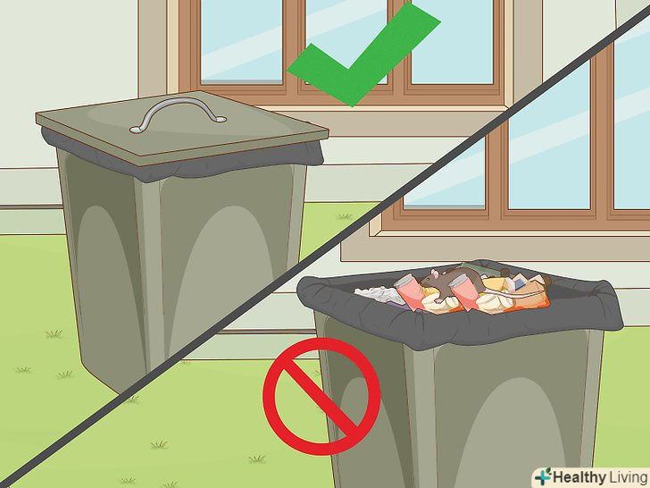 Зберігайте сміття в закритих бачках. мишей приваблює запах їжі, тому необхідно тримати сміття в закритих бачках в будинку і у дворі. Використовуйте бачки з щільно прилеглою кришкою. Виносьте сміття перед тим, як його повинні забрати. [14]- Мишей також можуть залучати контейнери з переробленим сміттям, оскільки в пляшках, коробках і банках всередині них можуть бути залишки їжі. Тримайте такі контейнери щільно закритими.