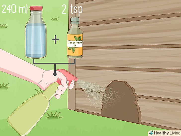 Спробуйте використовувати репеленти та інші засоби. деякі в якості натурального репеленту використовують масло перцевої м'яти, проте неясно, наскільки ефективно даний засіб. Спробуйте змішати в пляшці з розпилювачем 2 чайні ложки (10 мілілітрів) масла перцевої м'яти і 1 стакан (240 мілілітрів) води і розбризкуйте розчин в тих місцях, де часто з'являються миші. [17] можна також придбати ультразвукові відлякувачі мишей і розставити їх по дому.- Немає переконливих доказів того, що масло перцевої м'яти або інші ефірні масла здатні ефективно відлякувати мишей. Ультразвукові репеленти можуть бути ефективними протягом деякого часу, однак миші, як правило, в кінці кінців звикають до них. Використовуйте ці способи в поєднанні з іншими методами боротьби з мишами. [18]