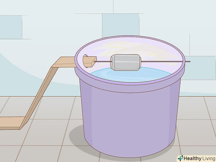- Притуліть до відра дошку, щоб миша могла легко піднятися по ній до дроту.