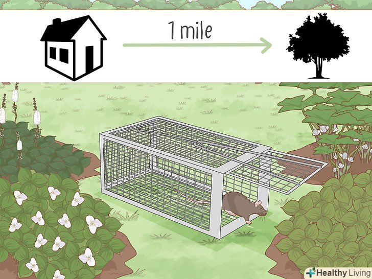 Випустіть мишу після того, як вона потрапить в пастку. не слід робити це прямо біля будинку. Віднесіть або відвезіть пастку хоча б на півтора кілометра від свого будинку, якщо не хочете, щоб миша повернулася. Випустіть мишу в парку або лісосмузі: просто відкрийте пастку і дайте їй піти.- Деякі організації по захисту прав тварин рекомендують випускати мишей в іншу будівлю, наприклад в належний вам гараж або під навіс. Це дасть миші більше шансів на виживання, особливо якщо вона все своє життя прожила в будинку. [5]