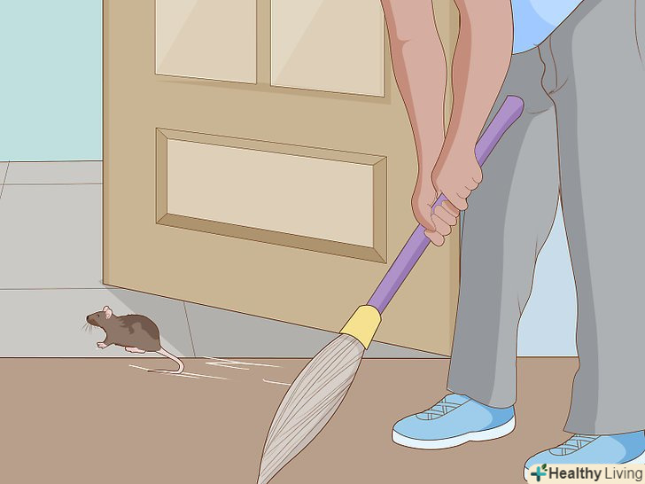 Спробуйте прогнати мишу з дому. є ще один гуманний спосіб, за допомогою якого можна вигнати миша з дому, — просто виженете її назовні! Іноді миша забрідає в будинок випадково і бігає всередині, розгубившись і бажаючи вибратися назовні так само сильно, як і ви хочете позбутися від неї. Допоможіть їй: підштовхніть її віником у бік відкритих дверей. Можливо, вам доведеться трохи побігати за мишею, перш ніж у вас вийде вигнати її назовні. Проте це набагато швидше, ніж ловити мишу, а потім випускати її.- Звичайно, якщо ви скористаєтеся цим способом, миша може спробувати відразу ж повернутися назад, особливо якщо вона пробралася в будинок через отвір під дверима або дірку в фундаменті. Якщо ваш будинок не захищений від мишей, постарайтеся закрити всі лазівки і використовуйте репеленти, щоб відлякати мишей.
