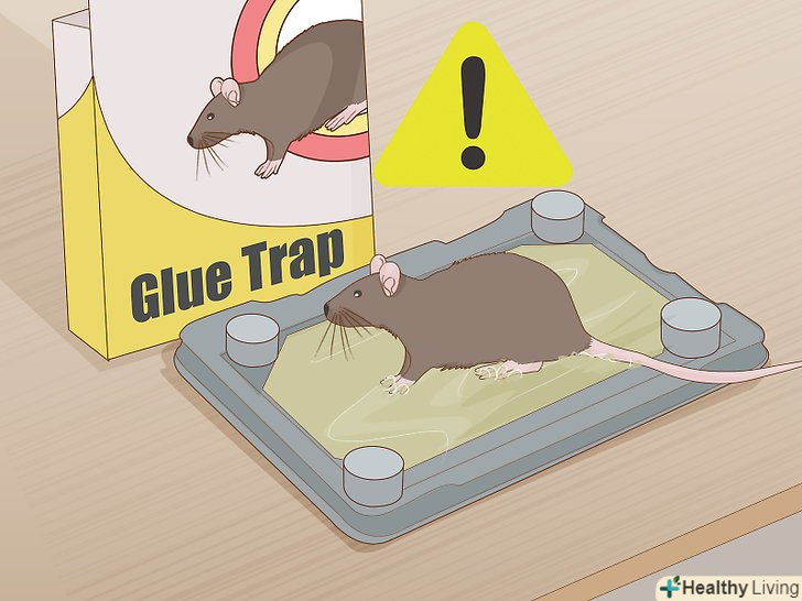 Не користуйтеся негуманними клейовими пастками. Клейові мишоловки мають вигляд маленьких картонних будиночків або лотків. Їх дно покрито дуже липким клеєм, який утримує мишу після того, як вона забіжить в пастку. Зрештою спіймана миша вмирає від голоду. Такі пастки викликають у мишей непотрібний стрес, біль і страждання, тому більшість організацій із захисту прав тварин настійно рекомендують не використовувати їх. Виберіть замість клейовий яку-небудь іншу пастку. [8]- Фахівці центрів з контролю і профілактики захворювань (США) також не рекомендують користуватися клейовими пастками, так як потрапили в пастки миші або інші тварини можуть мочитися або випорожнюватися, що наражає на небезпеку зараження тих, хто звертається з пасткою. [9]