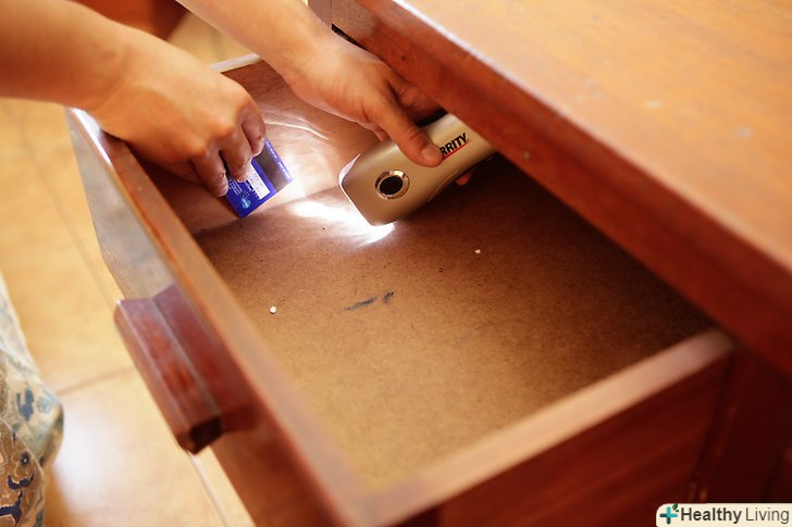 Проробляйте все ретельно. перевірте шви і нижню частину ящиків комода за допомогою кредитної картки і ліхтарика.