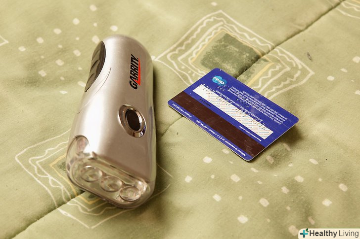 Підготуйте інструменти. Візьміть ліхтарик з яскравим світінням і стару кредитну картку.