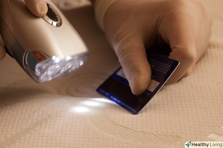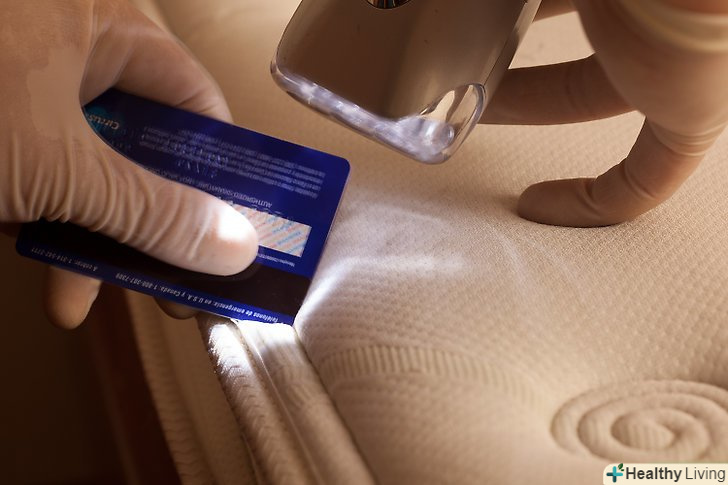 Використання кредитної картки. проведіть кредитною карткою по шву матраца, висвітлюючи її ліхтариком. Таким чином ви зможете виявити клопів, що сховалися в швах матраца, їх лусочки і випорожнення.
