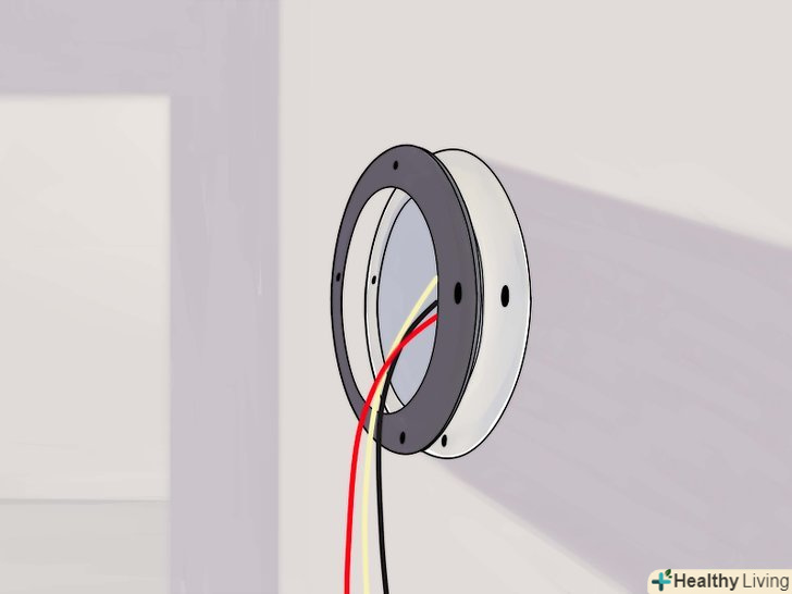 Встановіть гумову прокладку, яка продавалася зі світильником, по зовнішньому краю нового світильника. в упаковці зі світильником буде лежати гумова прокладка, яка щільно закріплюється біля основи світильника. Простягніть крізь прокладку електропроводку і закріпіть її на своє місце. Зараз не обов'язково вирівнювати її ідеально. Вам лише необхідно, що прокладка була на своєму місці до того, як ви підключите електропроводку світильника до електрощита, інакше вам знову доведеться її відключити. [6]