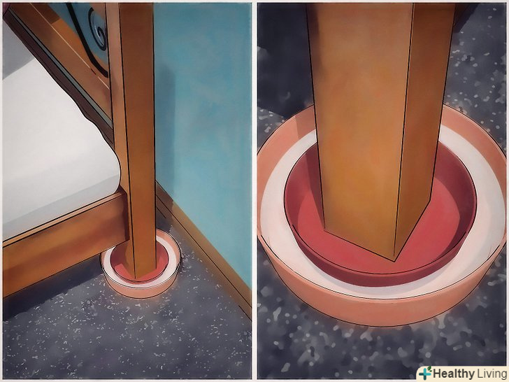 Поставте ніжки ліжка в пластикові миски. придбайте чотири пластикові миски і поставте їх дном на підлогу біля ніжок ліжка (по мисці біля кожної ніжки). Поставте кожну ніжку всередину миски. В результаті клопи не зможуть забратися на ліжко з інших місць (шафи, килима і так далі).