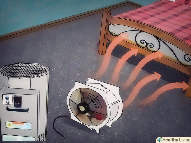 Придбайте для спальні переносний нагрівач. його можна тримати в руках або ставити на підлогу. Оскільки клопи не переносять високих температур, нагрівач допоможе вбити їх. [12]- Використовуйте вертикальний нагрівач. Поставте його на підлогу і виставте температуру 27-30 °C. Не забудьте закрити двері, щоб не випускати із спальні тепло. Попередження: слідкуйте за кімнатою, щоб в ній не виникла пожежа. [13]