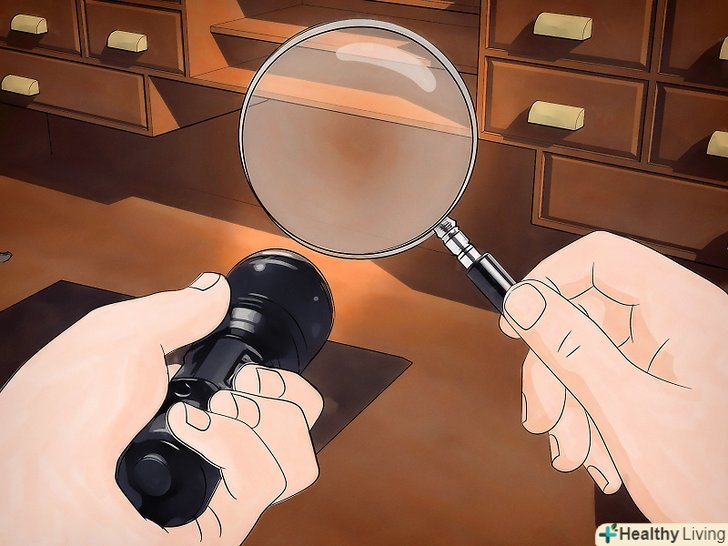 Огляньте своє робоче місце. як це не дивно, клопи можуть завестися не тільки вдома, але і на роботі. Вони можуть з'явитися в кімнаті відпочинку, вчительській, офісі або на складі.- Огляньте меблі за допомогою збільшувального скла і ліхтарика. Перевірте шви і складки тканини. Огляньте дерев'яні плінтуси. Перевірте, чи немає слідів клопів в щілинах на стіні або за відсталими від стіни шпалерами/фарбою. Саме в цих місцях люблять ховатися клопи.