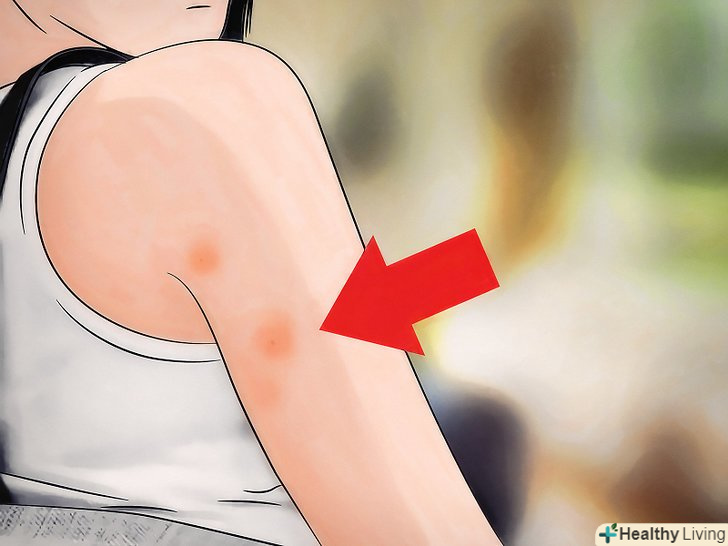Подивіться, чи немає на вашій шкірі слідів укусів. зазвичай клопи ведуть нічний спосіб життя і прокушують шкіру, щоб смоктати кров. Багато хто плутає сліди укусів клопів і комарів, хоча насправді вони сильно розрізняються. [7]- Оглядайте вранці щиколотки і ступні. Клопи прокушують оголену шкіру, і часто саме ступні і щиколотки не прикриті одягом в нічний час. Проте сліди від укусів можуть з'явитися і в будь-якому іншому місці тіла.