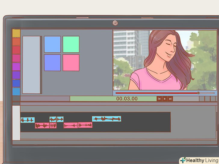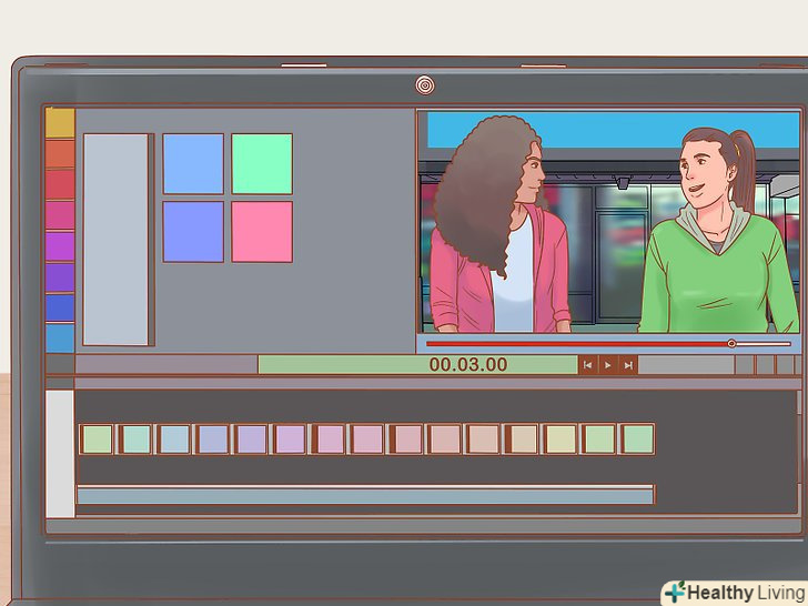 Змонтуйте фільм.на цьому етапі потрібно зібрати весь матеріал воєдино так, щоб фільм вийшов послідовним і логічним. Як правило, корисно залишити побільше дії, щоб у фільмі не повисали нудні паузи без дії. Це означає, що вам необхідно з'єднати кадри, де є дія (наприклад, Іван відкриває двері в вітальню). Потрібно з'єднати кадри рухів Івана з одного ракурсу і з іншого.- Нерідко камера перескакує з загального плану на великий. Наприклад, спочатку показується, як два чоловіки розмовляють, а потім близько показують обличчя лиходія.