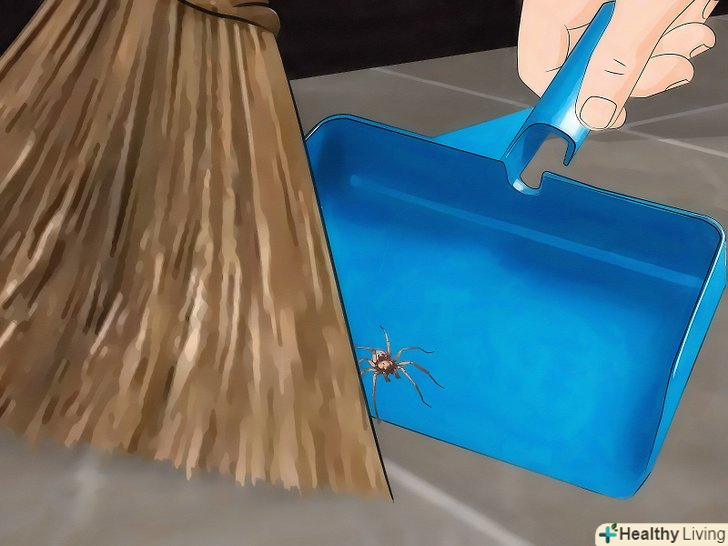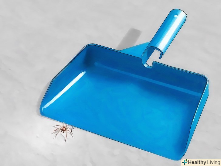 Змийте павука в совок для сміття. якщо павук знаходиться на підлозі, помітите його в совок для сміття. Це можна зробити і в тому випадку, якщо павук сидить на стіні, проте будьте обережні, щоб він не впав на вас! [8]