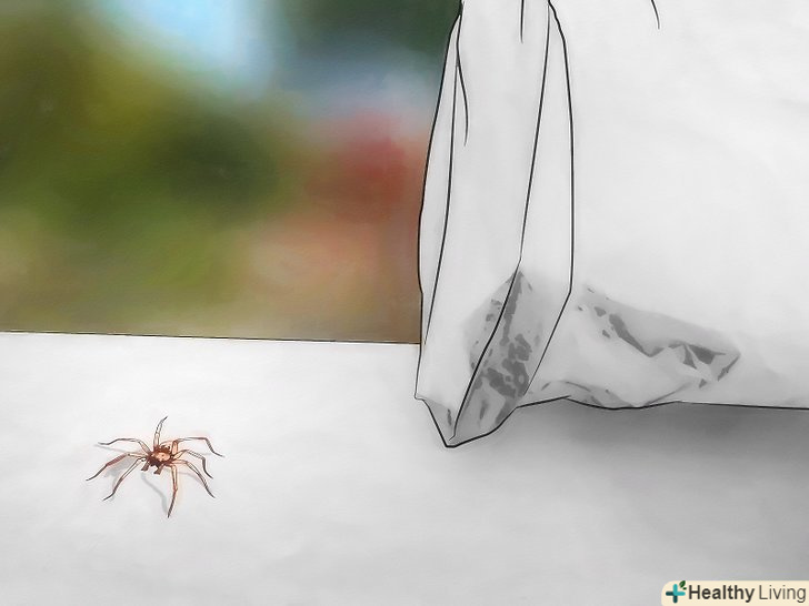 Виверніть пакет. досить швидко, щоб павук не встиг вислизнути, виверніть пакет навиворіт. В результаті павук опиниться всередині пакета. Закрийте пакет, щоб павук не вибрався з нього. [13]