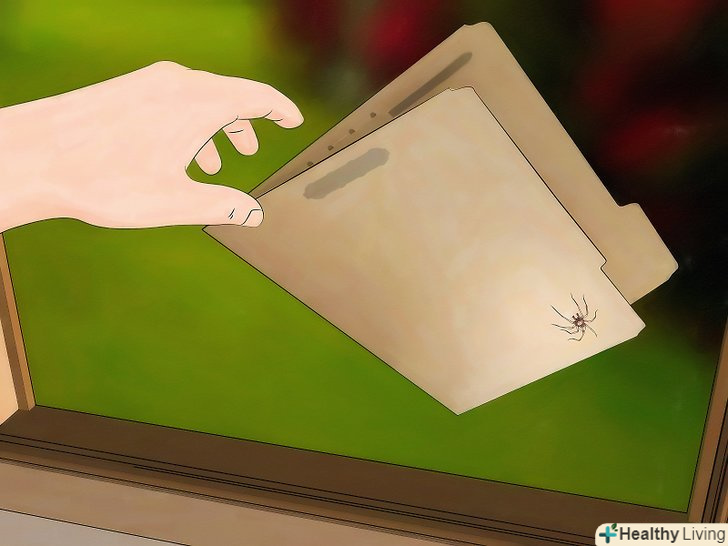 Відкрийте поблизу від павука двері або вікно. якщо павук не отруйний, є безліч способів вигнати його на вулицю. Наприклад, павук може перебувати поруч з вікном або дверима, і досить відкрити їх, щоб випустити його назовні. Спробуйте відкрити вікно або двері — можливо, павук сам покине ваш будинок. [1]- Обійдіть павука і повільно відкрийте двері або вікно. Якщо ви злякаєте павука, він може втекти і сховатися, і вам складно буде виманити його з укриття.