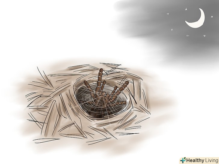 У денний час знайдіть вхід в нору павука. на вході можна помітити павутину, до якої іноді приплітаються рослини. Швидше за все, ви не побачите цього павука вдень, так як він веде нічний спосіб життя. Але якщо підстерігати його вночі, то вам може пощастити.