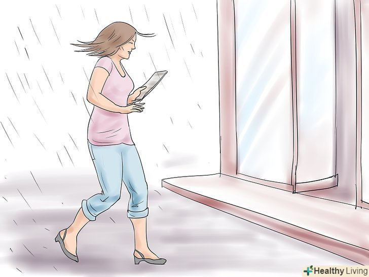 Знайдіть притулок. якщо ви знаходитесь де-небудь на природі, і вас наздоганяє грозовий шторм, то постарайтеся знайти будівлю з електричної та сантехнічної інфраструктурою, такий як житловий будинок, кафе, ресторан або супермаркет. Якщо ви не бачите поблизу нічого подібного, то сховайтеся в автомобілі і закрийте всі двері і вікна. Альтанки, намети та інші старі споруди не здатні убезпечити вас від удару блискавки. На випадок неможливості виявити безпечну конструкцію для укриття, дотримуйтесь наступних запобіжних заходів:- Знаходитеся якомога нижче;