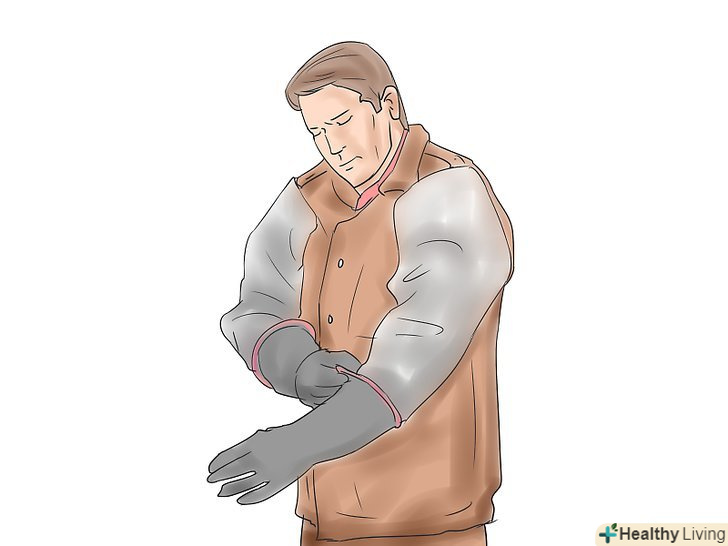 Одягніть захисну екіпіровку. взуття з гумовою підошвою і струмопровідні рукавички створять необхідну перешкоду для проникнення струму в ваше тіло. Ви також можете постелити гумовий килимок на підлогу.