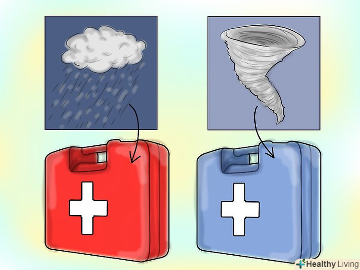 Враховуйте специфіку місцевості. залежно від місця проживання вам можуть знадобитися різні предмети першої необхідності на випадок таких НС, як повінь, ураган або торнадо. Природно, деякі предмети потрібні в будь-якому випадку і не залежать від місцевості.