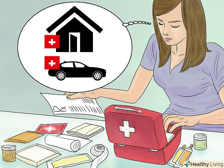 ЗберітьІ регулярно перевіряйте аптечку. Одну аптечку Зберігайте вдома в доступному місці, а другу в автомобілі. Медичні препарати та мазі мають обмежений термін придатності. Перевіряйте аптечку і аварійні Набори один раз на рік і міняйте всі вироби з вичерпаним терміном придатності. Приблизний склад аптечки: [4]- Абсорбуючі пов'язки і холодні компреси негайної дії;