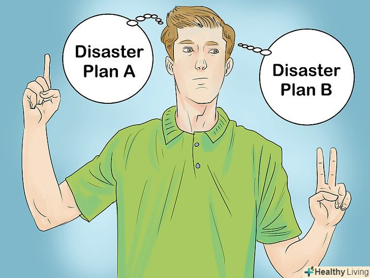 Підготуйте план дій в нештатних ситуаціях. на випадок недоступності маршруту та інших змін слід мати запасний план. Що робити, якщо Контактна особа не відповідає на дзвінки або один з членів сім'ї знаходиться в іншому місті? Важливо мати план на випадок всіляких варіантів, щоб підвищити шанс пережити катастрофу.