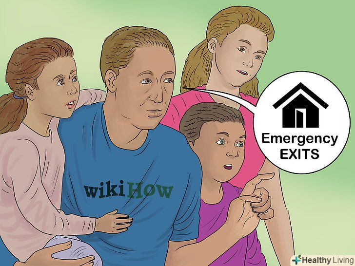 Визначте всі можливі маршрути евакуації з дому. зберіть всіх членів сім'ї, потім обійдіть весь будинок і знайдіть всі можливі виходи. Не обмежуйтеся очевидними виходами на зразок парадних і задніх дверей. Враховуйте наступне: вікна на першому поверсі, гаражні двері та інші безпечні способи евакуації з дому. Намагайтеся знайти хоча б два виходи з кожної кімнати. [5]- Намалюйте поверховий план будинку і позначте виходи, щоб їх було простіше запам'ятати.