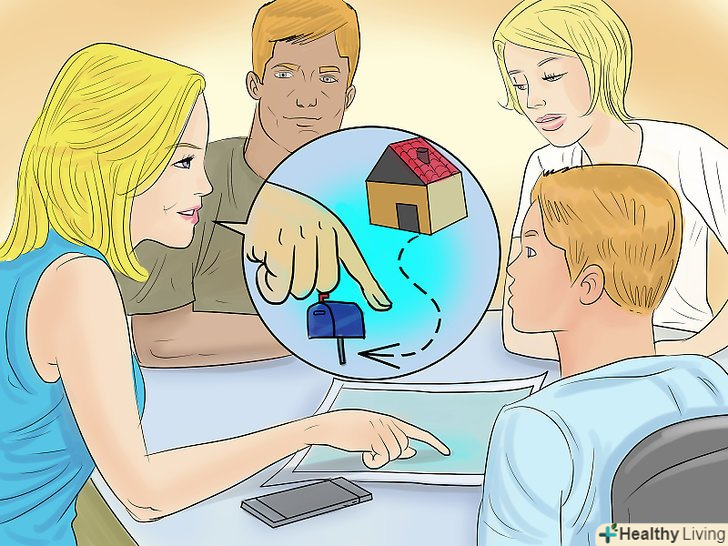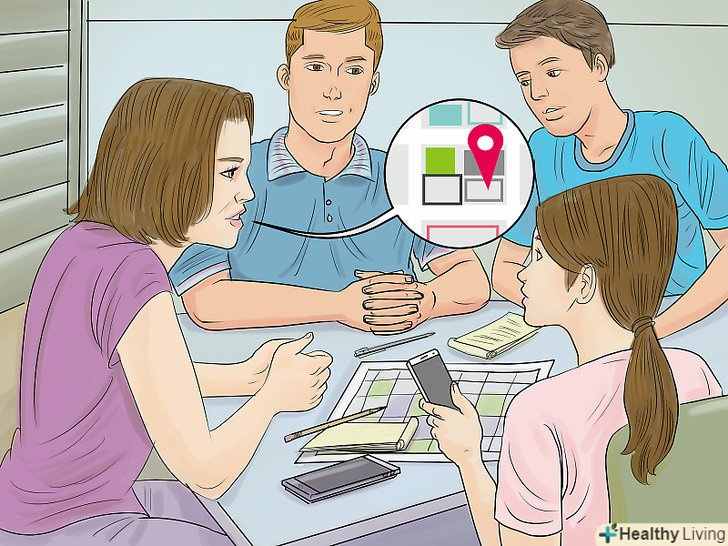 Виберіть місце збору на безпечній відстані від будинку. після евакуації з дому всі члени сім'ї повинні прибігти в точку збору, яка знаходиться на безпечній відстані від будинку, але не надто далеко. Це може бути майданчик перед будинком сусідів, поштову скриньку, ліхтарний стовп. Всі повинні прийти в це місце після евакуації, щоб переконатися в безпеці кожного члена сім'ї. [11]- Позначте точку збору на плані евакуації.