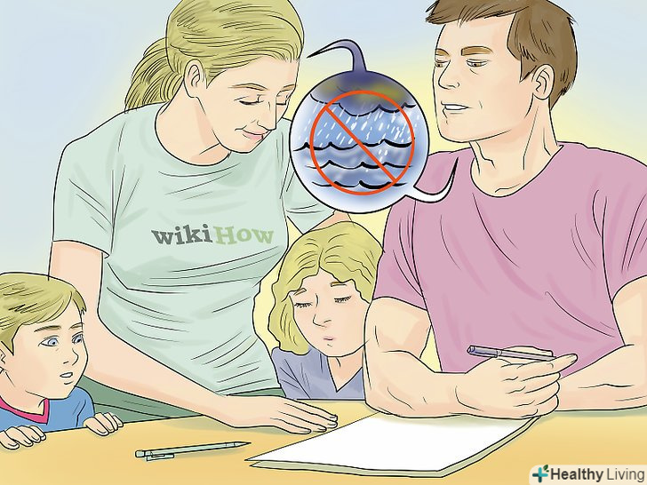Продумайте план евакуації на випадок повені. Вашій родині необхідно обговорити дії на випадок повені у Вашому регіоні. Що робити, якщо вся сім'я знаходиться вдома? Як слід вчинити, якщо всі знаходяться в різних частинах міста? Краще скласти кілька планів, щоб знайти оптимальні рішення. [14]- Виберіть друга або родича з іншої області в якості контактної особи, щоб кожен міг зателефонувати йому і знайти інших. Всі повинні знати ім'я, адресу і телефон цієї людини.