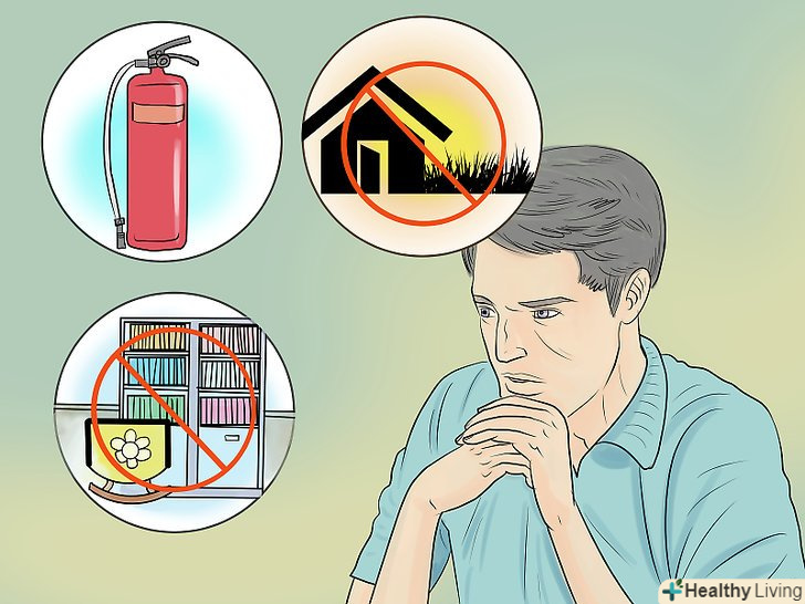 Усуньте потенційні небезпеки будинку. визначте можливі сценарії лиха і дуже уважно огляньте своє житло, щоб зробити його максимально безпечним. Деякі приклади:- У кожному житлі повинні бути датчики диму і вогнегасники. Перевіряйте датчики диму раз на місяць або частіше і щорічно міняйте батарейки . Вогнегасник потрібно заправляти відповідно до інструкцій виробника. Навчіть кожного члена своєї сім'ї користуватися вогнегасником . Також всі повинні знати способи евакуації з будинку в разі пожежі.