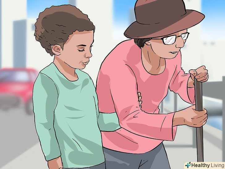 Надайте допомогу молодшим братам і сестрам, бабусям і дідусям. якщо у вас є молодші брати і сестри, переконайтеся в тому, що вони знаходяться в безпеці і не поранені після цунамі. Старим родичам, включаючи бабусь і дідусів, може вимагатися ваша допомога, так як через вік вони можуть відчувати складнощі з самостійним пересуванням. Якщо хто-небудь з них потребує серйозної медичної допомоги, доведіть це до відома батьків. [18]- Ви повинні точно знати, де саме у вашому екстреному наборі речей знаходиться аптечка першої допомоги, щоб ви могли допомогти обробити невеликі травми У інших людей, наприклад, змастити рану антибактеріальною маззю або накласти пов'язку на поріз.
