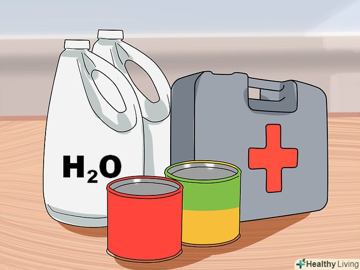 Приготуйте екстрений набір речей. будемо сподіватися, що ви ніколи не зіткнетеся з цунамі та іншими природними катаклізмами, але найбезпечніше буде підготуватися до них. Поговоріть з батьками про підготовку екстреного набору, щоб у вас було все необхідне, включаючи запас їжі, води і медикаментів на кілька днів, на той випадок, якщо ви опинитеся заблоковані в зоні цунамі. Складіть все це в зручну для перенесення ємність – речовий мішок, похідний рюкзак або в щільний сміттєвий пакет, який теж можна використовувати при необхідності. [5]- В набір слід включити по 3,5 л води на людину в день. Для евакуації необхідний запас на 3 дні. Якщо ж ви опинитеся заблоковані у себе вдома, то рекомендується мати двотижневий запас. [6]