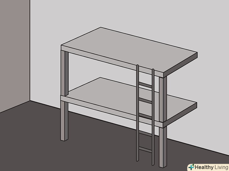 Встановіть ліжка, нари, полиці або лежаки біля стін. вам знадобиться по одному ліжку на члена сім'ї, плюс ще три для випадкових гостей і перехожих, які опинилися поблизу під час оголошення тривоги або удару.- Застеліть ліжку. Віддайте перевагу пуховим або синтетичним ковдрам, вовняні може з'їсти моль та інші шкідники.
