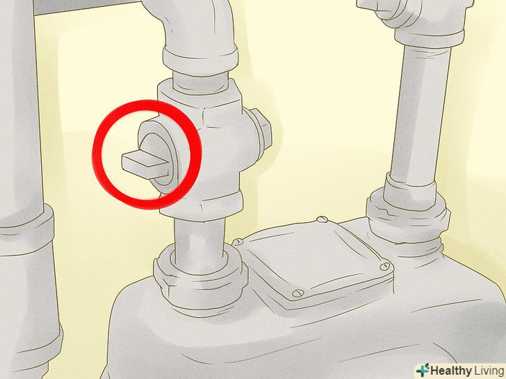 Вимкніть газ. газові прилади і труби можуть зміститися або зламатися під час повені, створюючи витоку газу. Якщо ви підозрюєте витік або відчуваєте запах газу, негайно покиньте будинок і зателефонуйте в газову компанію від сусідів або з аварійного укриття. Залиште двері відкритими, а якщо газовий лічильник знаходиться зовні, вимкніть газ.