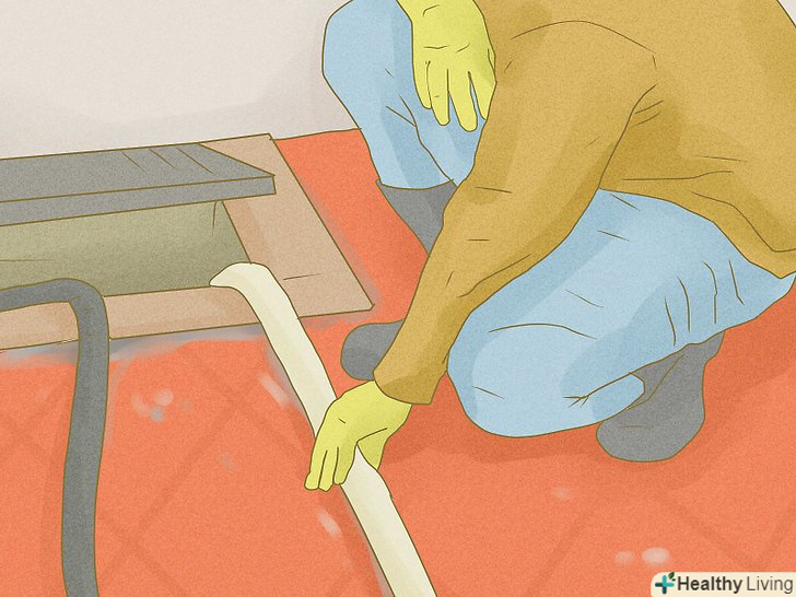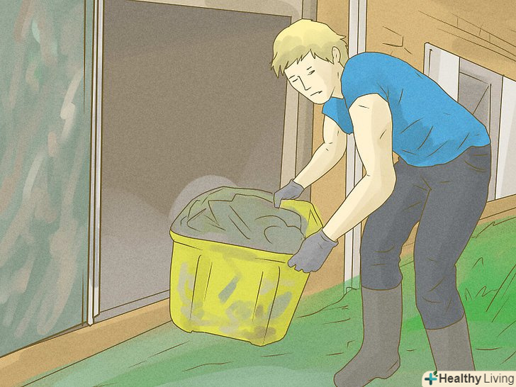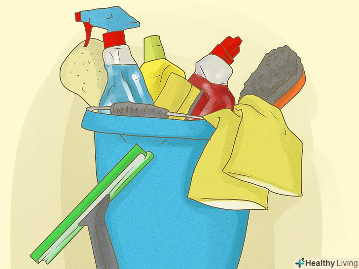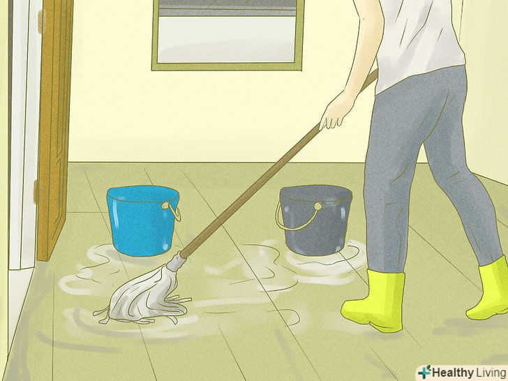 Дістаньте приналежності для чищення. Червоний Хрест і схожі організації часто доставляють чистячі приналежності після того, що сталося стихійного лиха. Ви можете отримати багато корисних речей, наприклад, мітлу, швабру, відро для сміття та чистячі засоби. У більшості випадків чистячі засоби відмінно впораються із завданням, якщо ви будете правильно ними користуватися. Дивіться на етикетки-там ви знайдете інструкцію із застосування. Після того як ви приберете в кімнаті або вимиєте якийсь предмет, пройдіться по ньому дезінфікуючим засобом, щоб убити мікроби і запах, що залишився після повені.