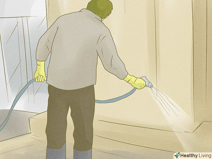 Вимийте будинок і весь його вміст за допомогою шланга. більшість загроз для здоров'я виникають через бруд, цвілі і водоростей, які з'являються після повені. Важливо якомога швидше позбутися від бруду. Це простіше зробити, поки бруд ще не висохла.
