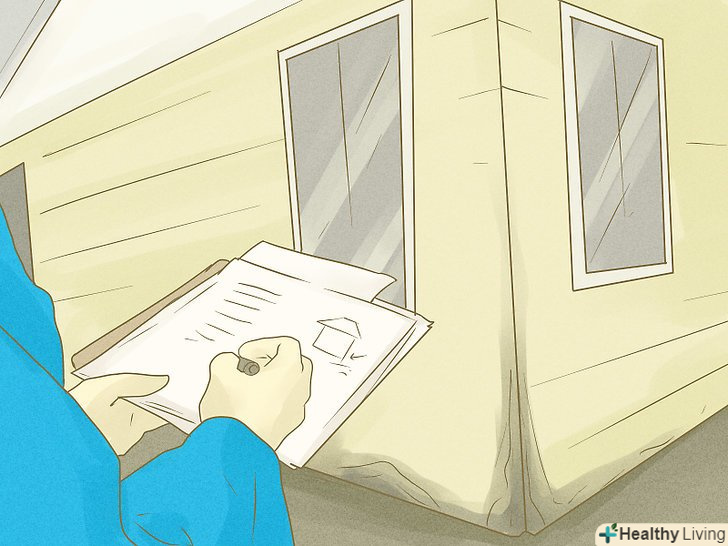 Огляньте свій будинок, перш ніж знову в нього заходити. коли стане безпечно повертатися, ви зможете захистити свій будинок і його вміст від подальшої псування. Що потрібно перевірити перш, ніж заходити:- Якщо у зовнішніх стін стояча вода, не заходьте в будинок. ви не можете знати, чи безпечний будинок і стійка конструкція.