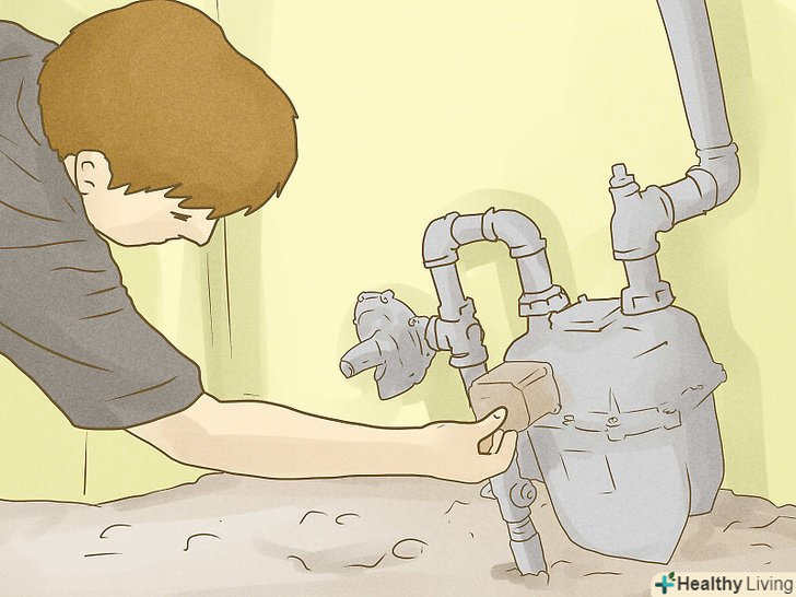 - Перевірте, чи не зламані і не протікають водопровідні труби. Якщо ви знайшли такі, вимкніть водопостачання, перекривши трубопровідний вентиль на лічильнику води. Якщо труби не протікають, використовуйте водопровідну воду, щоб прибирати і змивати бруд. Але не пийте цю воду і не готуйте на ній, поки не будете точно знати, що вона безпечна для вживання!