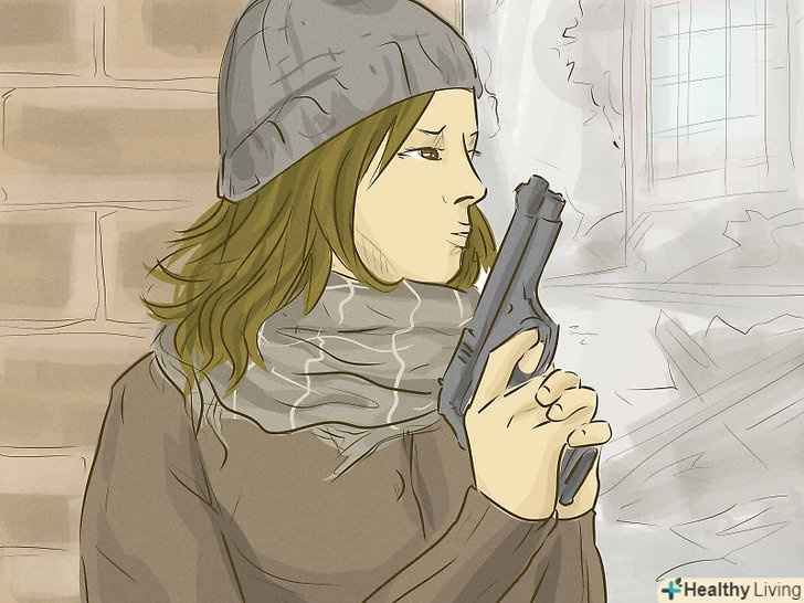 Будьте готові захищатися. у сформованих умовах слід вважати всіх інших людей своїми ворогами. Знайдіть зброю, яким ви зможете користуватися, і будьте напоготові. У спілкуванні з людьми тепер немає місця культурі і ввічливості. Робіть те, що необхідно робити.- Не демонструйте всім свою зброю. Ховайте його. [3] Пам'ятайте сцену з "Міцного горішка", в якій Брюс Вілліс приклеїв Пістолети до спини (хоча скотч не так-то легко приклеїти до пітної шкіри) і поодинці впорався з лиходієм, якого грав Джеремі Айронс або Алан Рікман? Уявіть себе в цій ролі. Ніхто не прийде вам на допомогу. Вам потрібно буде захищати себе самому (- ой).
