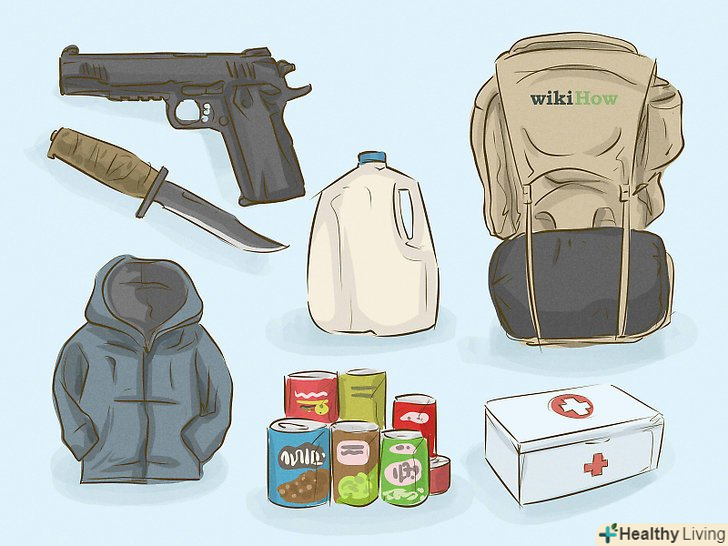Зберіть набір для виживання. з чим або ким би ви не зіткнулися (з канібалами, хижими супербактеріями, зомбі або метеором), вам потрібно буде думати про своє здоров'я. Ось список того, що варто включити в набір: [1]- Пластир;