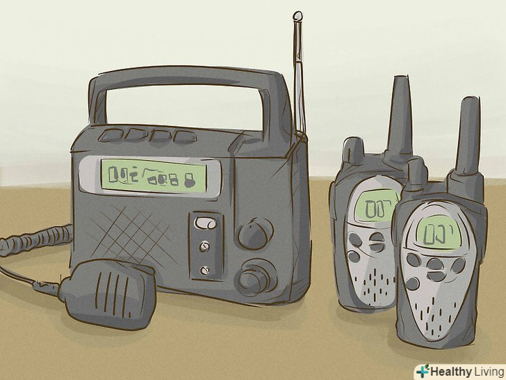 Продумайте систему зв'язку. все у вашому домі, а також близькі родичі і друзі повинні мати засіб зв'язку з вами. Передавайте інформацію про секретні місця родичам і друзям по радіозв'язку.- Підготуйте батарейки для радіопристрою. Відсутність батарейок може звести всі зусилля нанівець. І якщо у вас є близька людина, про яку ви дбаєте, дайте йому радіопристрій і попросіть завжди тримати його при собі.