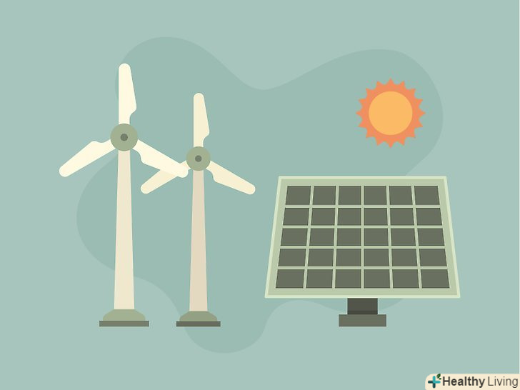 Використовуйте альтернативні види енергії. можна використовувати енергію сонця, води і вітру. У деяких країнах постачальники енергії пропонують споживачам вибирати джерело енергії. Якщо у вашій країні такої можливості немає, не турбуйтеся. встановіть сонячні панелі на свій будинок, спробуйте зібрати вітряну турбіну .