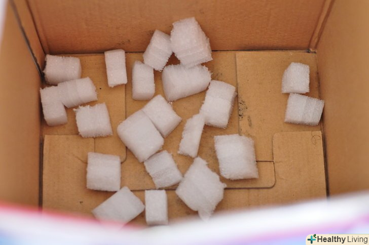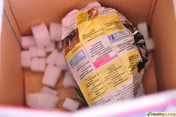 Покладіть пінопласт або гранули пінополістиролу (звані в народі «горішками») на дно коробки, перш ніж класти туди речі. .