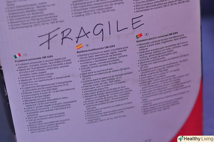Заклейте скотчем або закрийте кришку щільно. навіть якщо кришка має спеціальний закриває механізм, варто застосувати скотч щоб запобігти її випадкове відкривання під час транспортування. Обов'язкові написи» крихке «і» ВЕРХ " на бічних сторонах і зверху. Доброю ідеєю буде написати коробки точніше, наприклад «склянки» або «порцелянові тарілки».- Перевірте, чи немає небезпеки деформації. Якщо коробка може бути продавлена під дією іншого поміщеного на неї вантажу, то це може пошкодити і її вміст. Якщо виходить ще трохи втиснути кришку, то додайте ще набивання щоб здавлювання було неможливим.